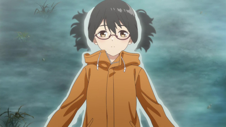 The episode kicks off with one of our leads, Kamikoshi Sorawo, staring blankly into the sky wondering if anyone in the real world will notice that she died. However, she hears someone call out to her. Together, Sorawo and the stranger succeed in destroying the strange wriggling mass of white that had attacked her. It’s a striking way to start the episode, but as I mentioned before there are downsides to the approach the show takes. When you throw viewers into a scenario with no explanation they’re going to be confused and disoriented. Many shows alleviate this by employing the aforementioned flashback to contextualize things, but by eschewing the traditional approach, you risk that sense of confusion persisting for a much longer period. This is a long winded way of saying that I don’t fully understand what this show is about, but that may be a deliberate choice as it appears to complement the tone of the episode. Anyway, the stranger is a girl named Nishina Toriko. Like Sorawo, she traveled to the “Otherside,” a strange desolate world that contains bizarre entities like the “Wiggle-Waggle” they encountered at the beginning. They find a bizarre cube that appears to be the creature’s remains, and Toriko takes it claiming she might be able to sell it. She tracks down Sorawo a week later and invites her to return to the Otherside together so they can gather more of the cubes. It’s a strange setup for a series which feels as if someone blended the storyboards of Mushishi and Flip Flappers. That’s a combination that really shouldn’t work, and I’m still struggling to decide whether or not it does.