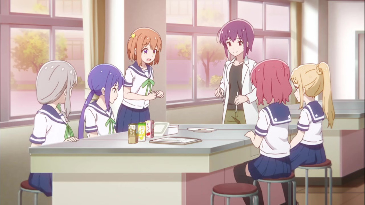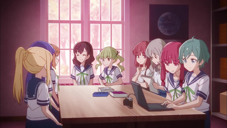 The characters themselves are fine and moderately varied, but they rarely extend beyond one or two gimmicks. Mira is boisterous and energetic. Ao is quiet and earnest. The club leader Mari is aloof and wants to be an astronaut, so on and so forth. None of these characters reach the point where they’re annoying, though one of the girls introduced later on is interested in fortune telling and the healing powers of stones and such nonsense, which I consider an unbecoming trait. Still, there was never a point where I said to myself, “I don’t like these characters.” However, I did reach the point where I didn’t really care where the show was going next. By the time I’d gotten to episode 9, I recognized I was primarily sticking with the show solely because I had hung around through the first two-thirds, so I may as well finish it. It’s all very pat. The cast needs to prepare for or carry out an activity. They do so. The show moves on. Cultural festivals, club trips, special events. There were opportunities to develop stakes or be informative, but the narrative just sort of breezed through them without a clear sense of drive.